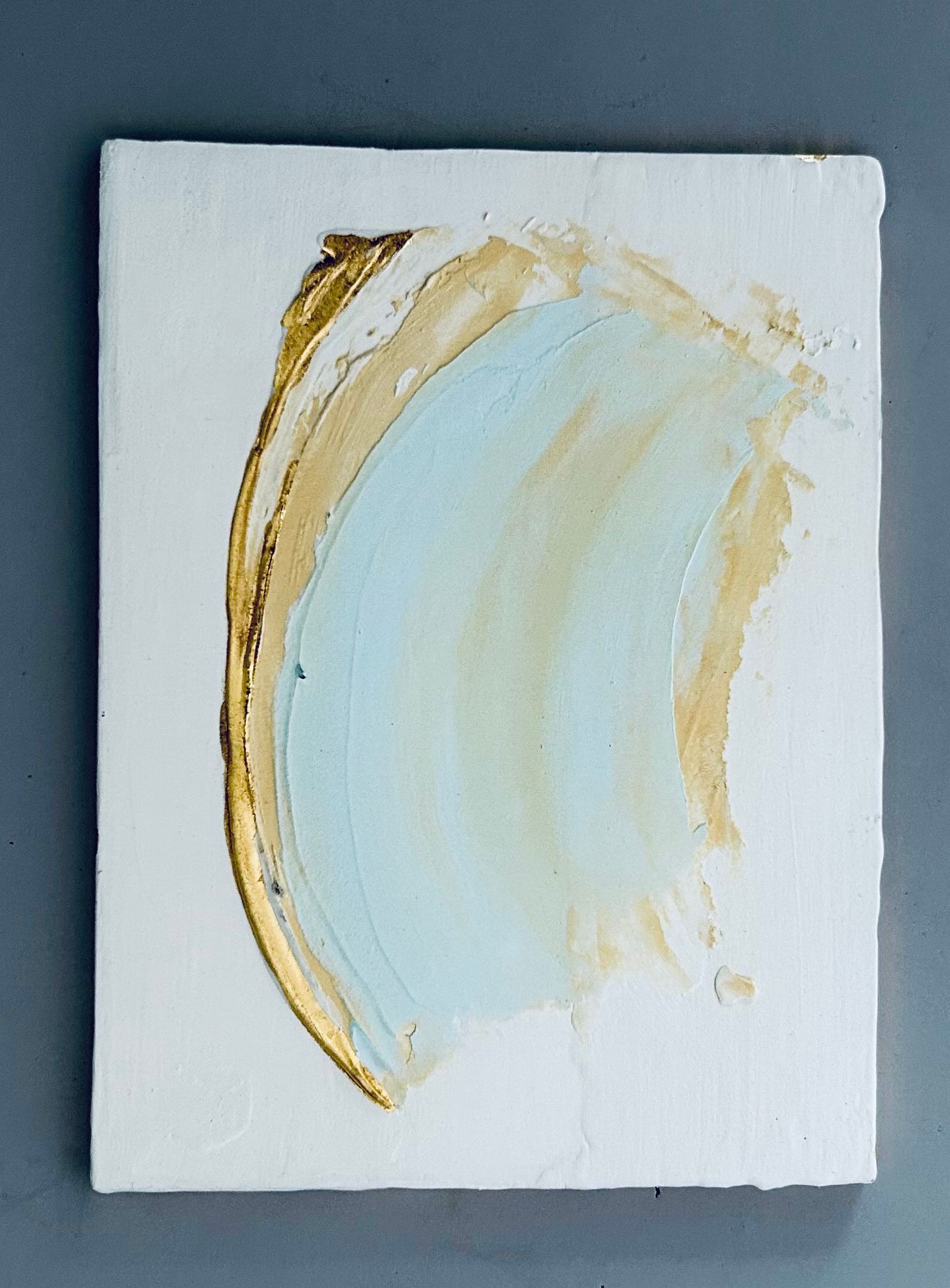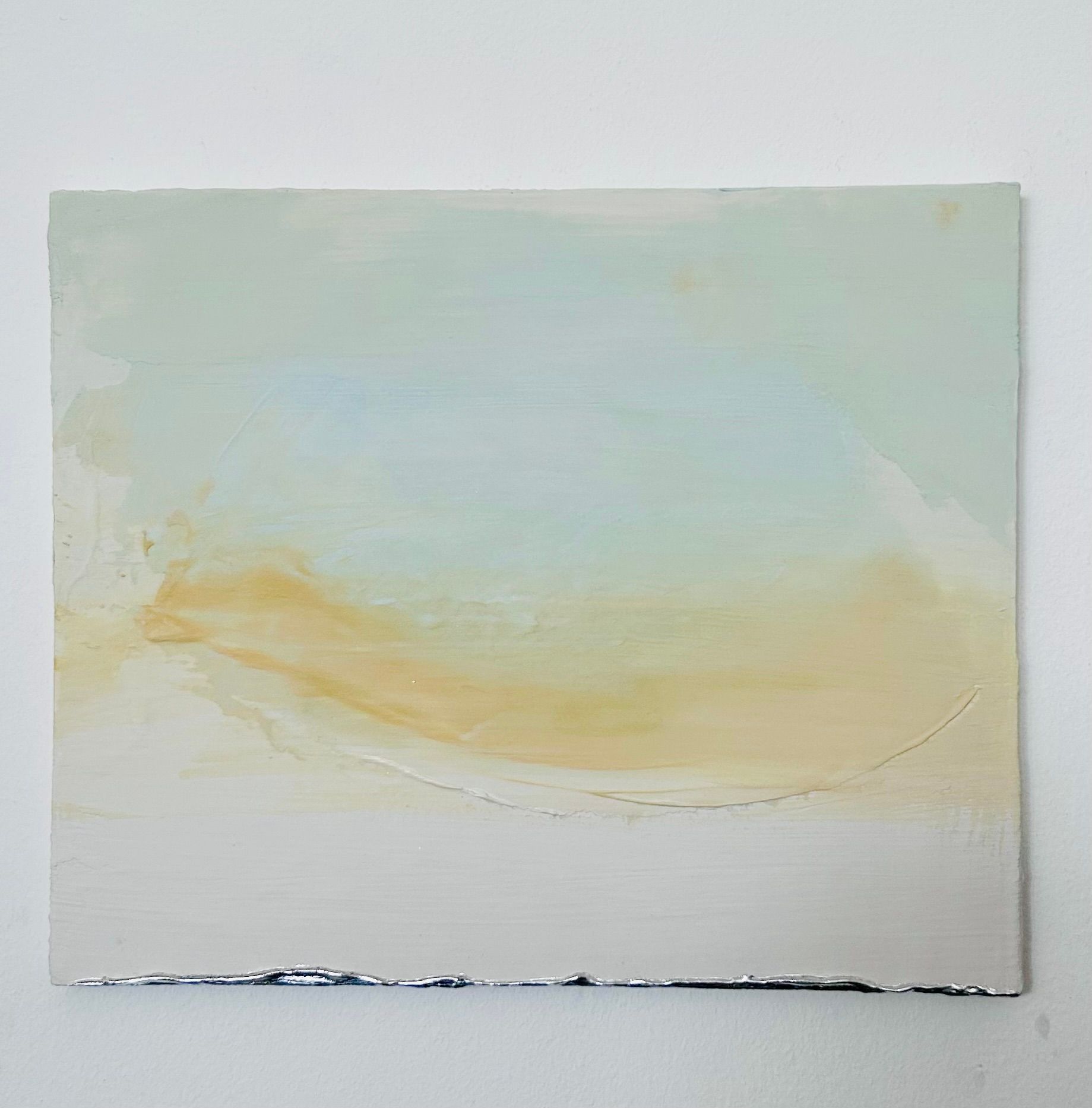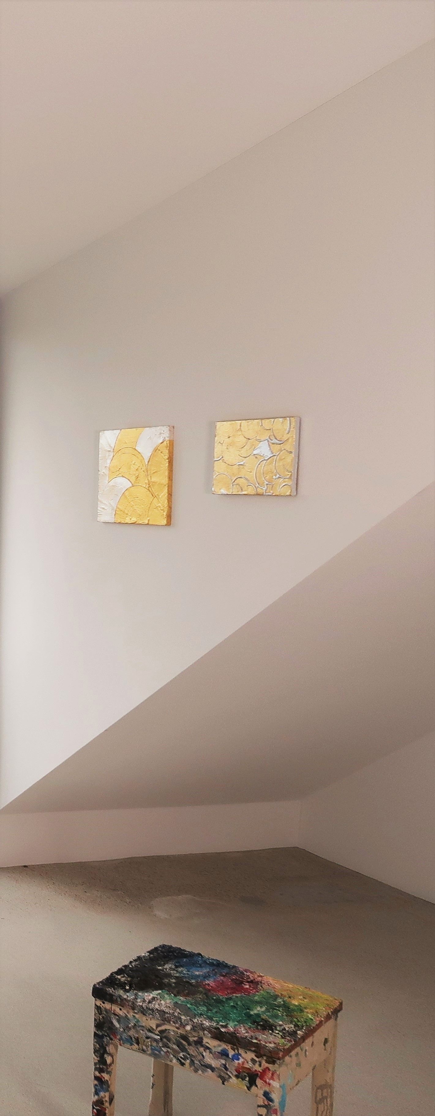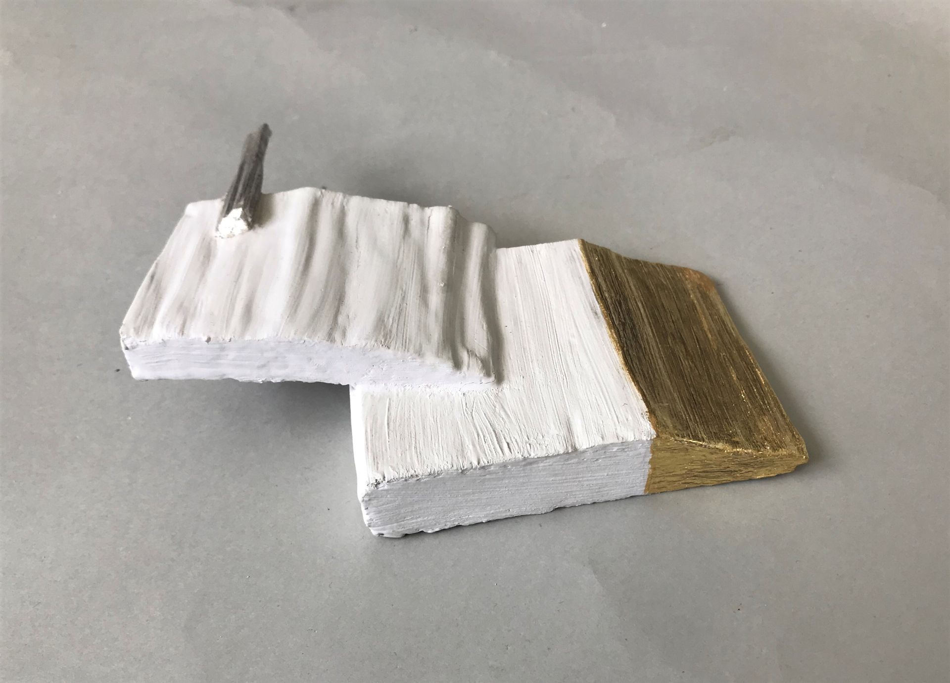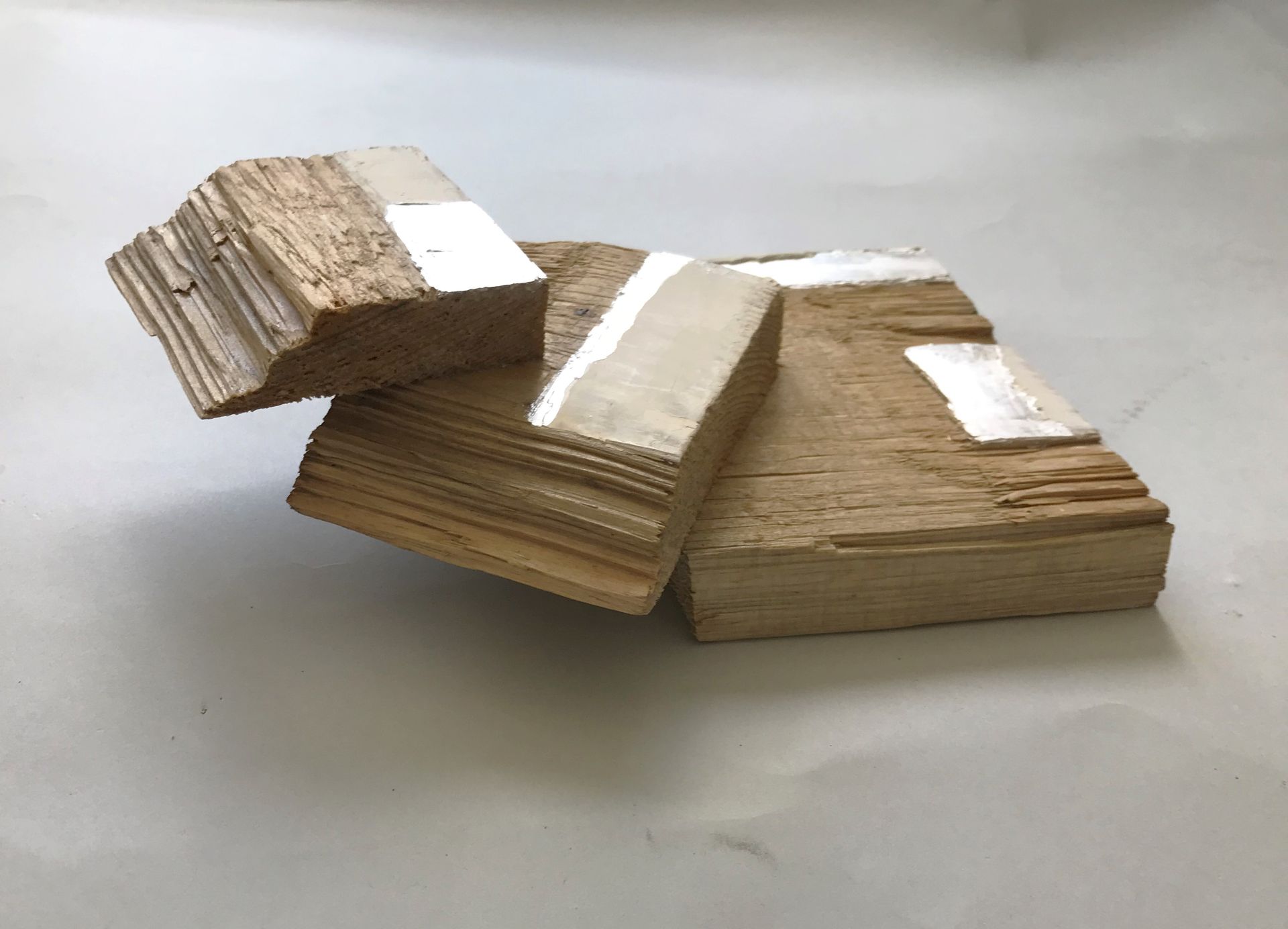 Franziska Siegl, ausgebildete Vergolderin/Kirchenmalermeisterin, verknüpft alte Techniken aus dem Handwerk mit einem formalen Minimalismus bei dem auch die Schönheit des Materials zur Geltung gebracht wird. Gold, Silber, Aluminium sind die Palette, die sie verwendet, wobei die Farbigkeit der Metalle fein auf das Tageslicht reagieren und die sich stets veränderlichen Farbwerte kaum fassen lassen. Auf diese Weise entstehen feine, kaum fassbare Objekte die in den Raum hinein wirken.